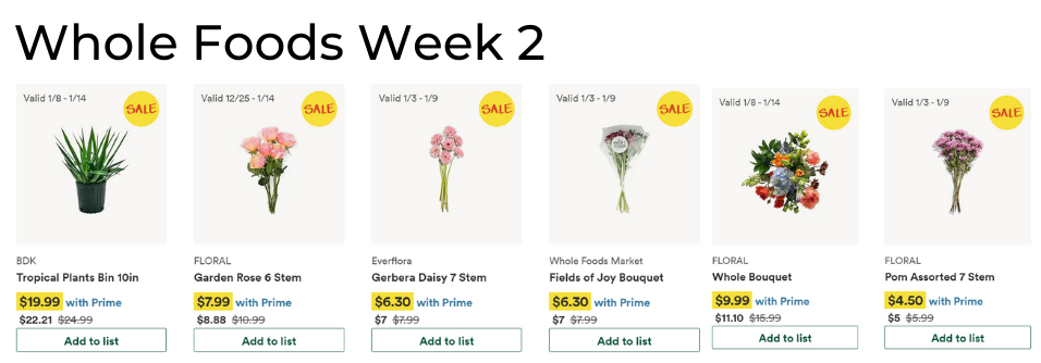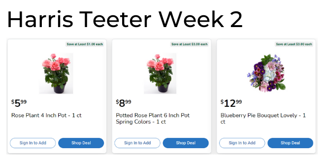 No floral ads this week from Cub Foods, The Fresh Market, Giant Eagle, HEB, Longo's, Schnucks, Stater Bros, Stop & Shop and Target.