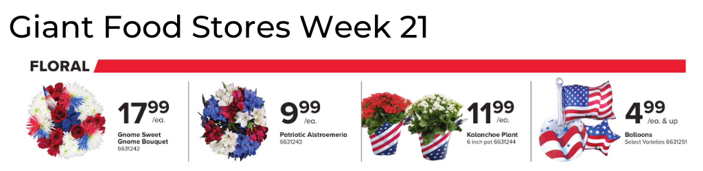 No floral ads this week from Cub Foods, Giant Eagle, HEB, Martin's, Meijer & Schnucks.