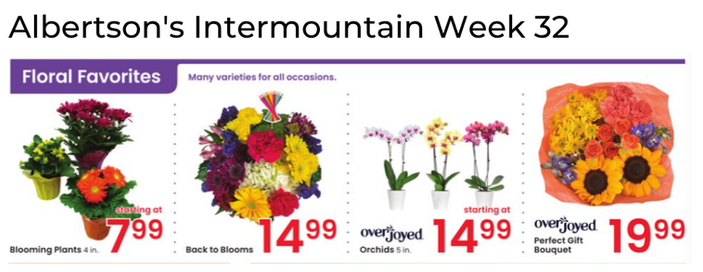 No floral ad this week from Aldi, Fresh Market, Giant Eagle, HEB, Lowes, Meijer, Schnucks, Stater Bros, Stop & Shop and Tony's Fresh Market.