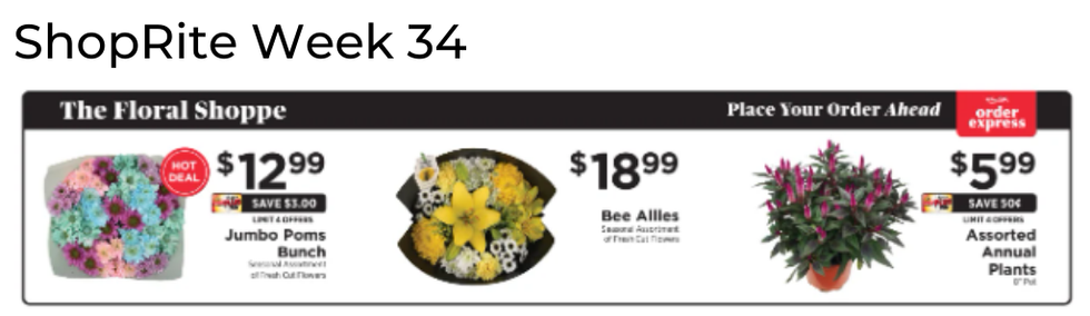 No floral ad this week from Aldi, Central Market, Cub Foods, Fresh Market, Giant Eagle, HEB, Lowes, Meijer, Schnucks, Stater Bros, and Stop & Shop.