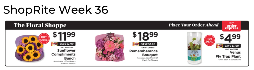 No floral ad this week from Aldi, Central Market, Cub Foods, The Fresh Market, Giant Eagle, HEB, Lowes, Meijer, Schnucks, Stater Bros, Stop & Shop and Tony's Fresh Market.