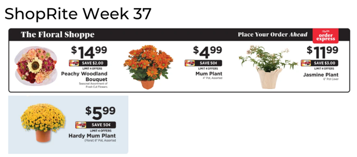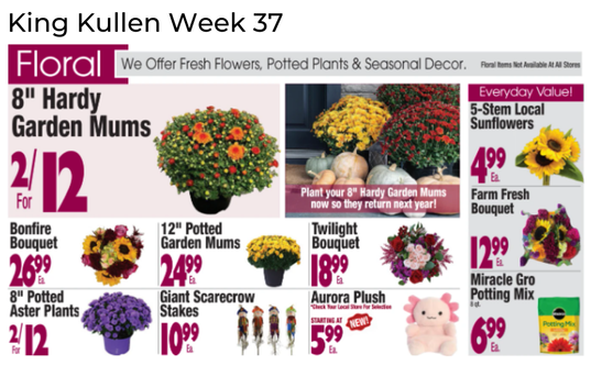 No floral ad this week from Cub Foods, The Fresh Market, Giant Eagle, Meijer, Schnucks, Stater Bros and Tony's Fresh Market.