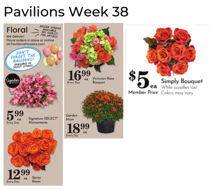 No floral ad this week from Aldi, The Fresh Market, Giant Eagle, HEB, Meijer, Schnucks, and Stater Bros.